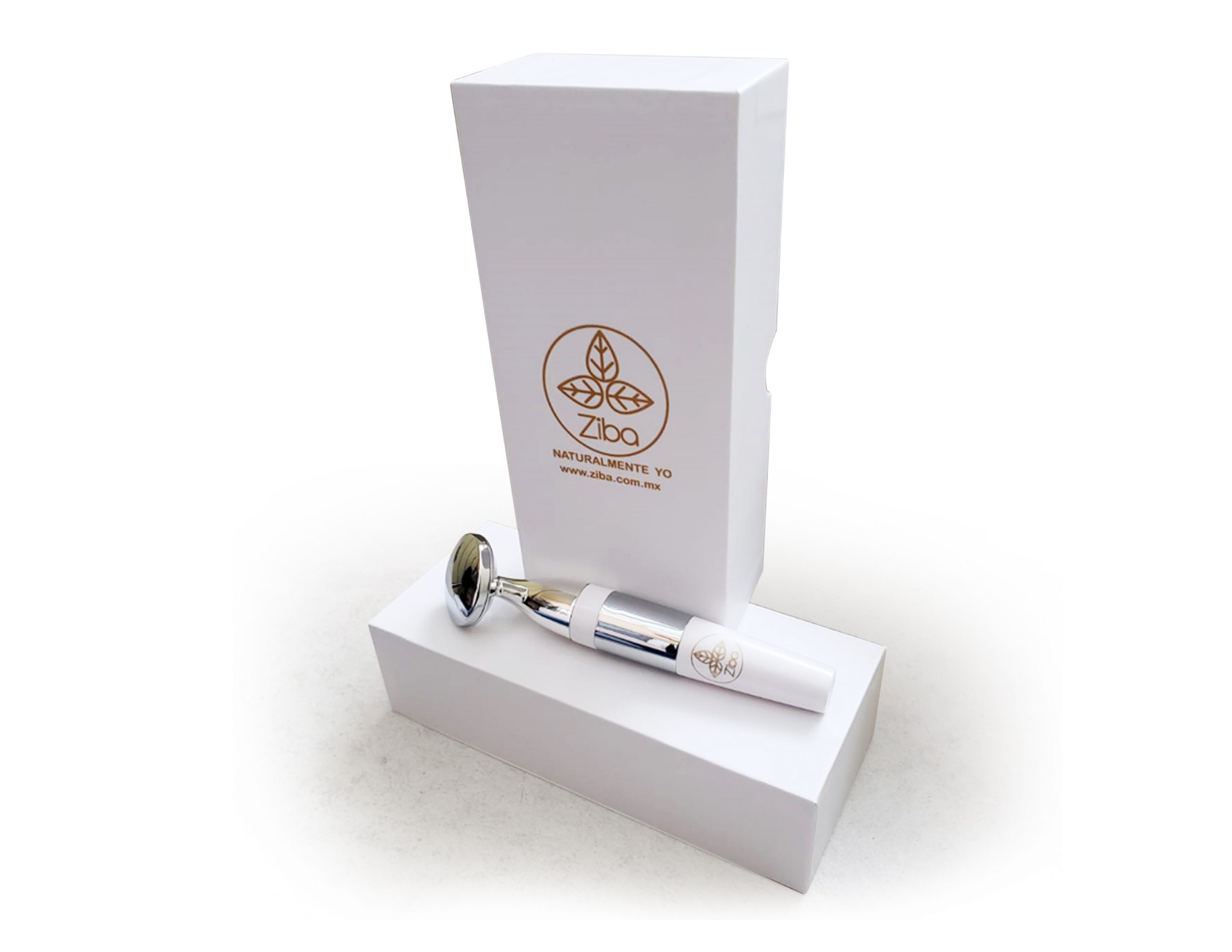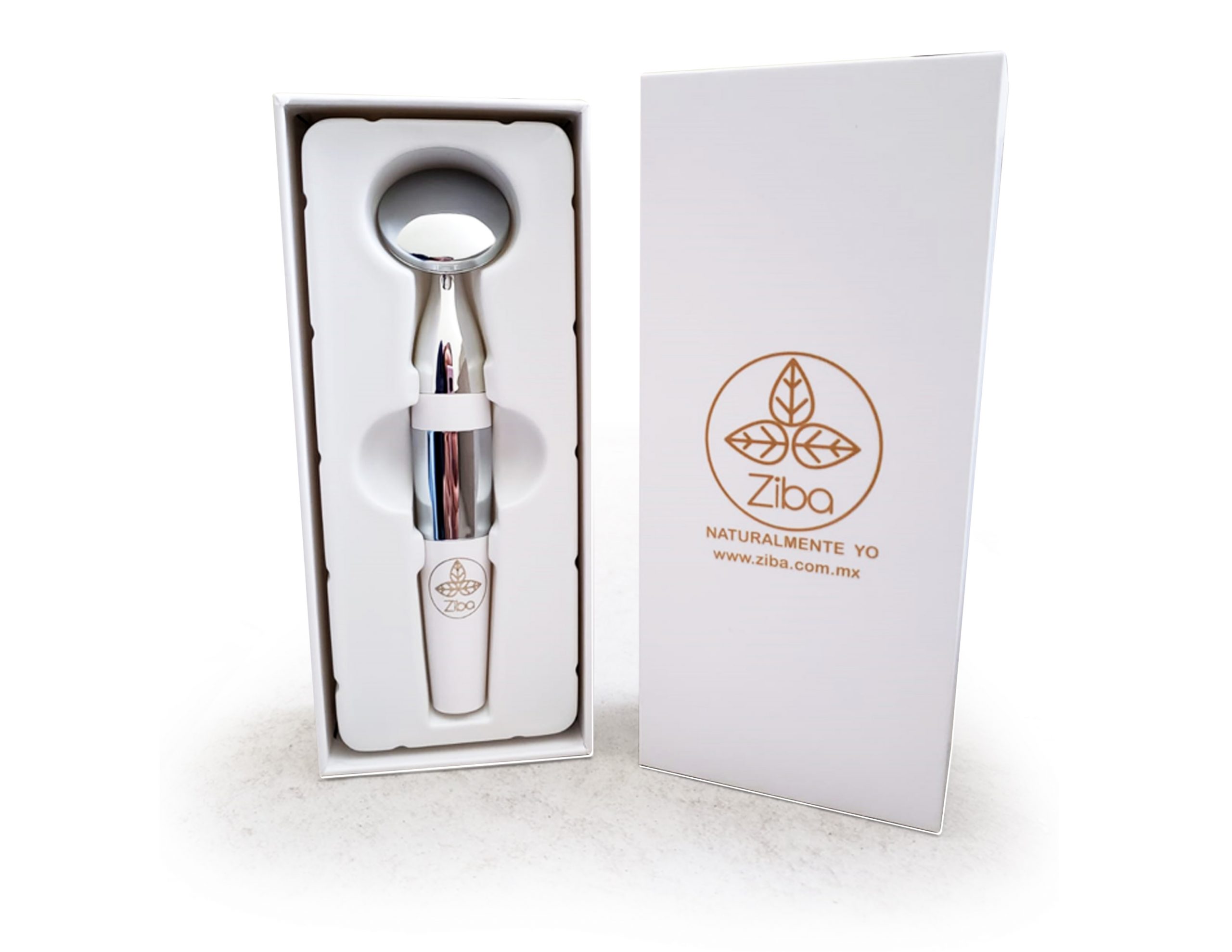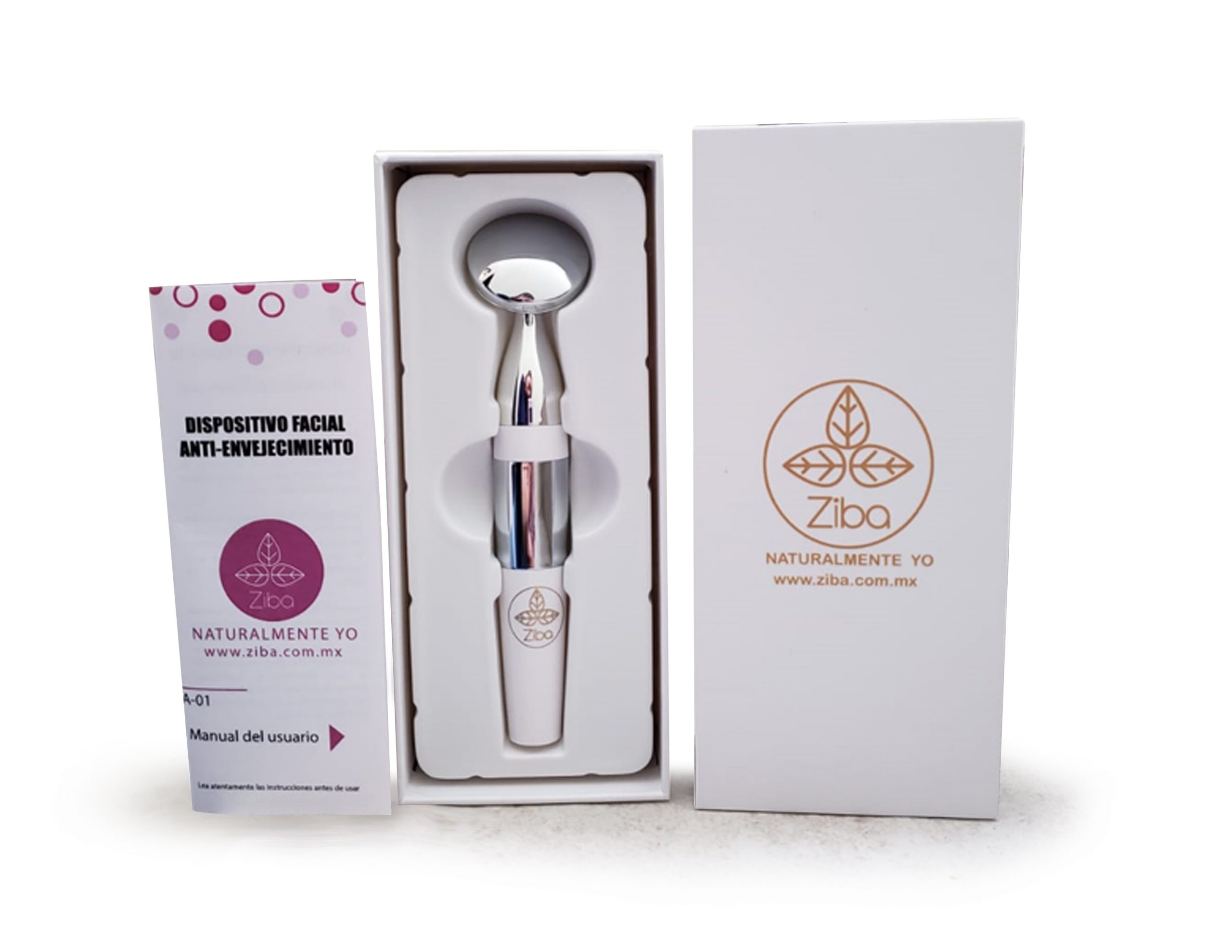 Dispositivo Facial Anti- Envejecimiento Ziba utiliza un diseño exclusivo de modo que los productos sondean el cuerpo para producir una gran cantidad de microcorrientes de iones.
