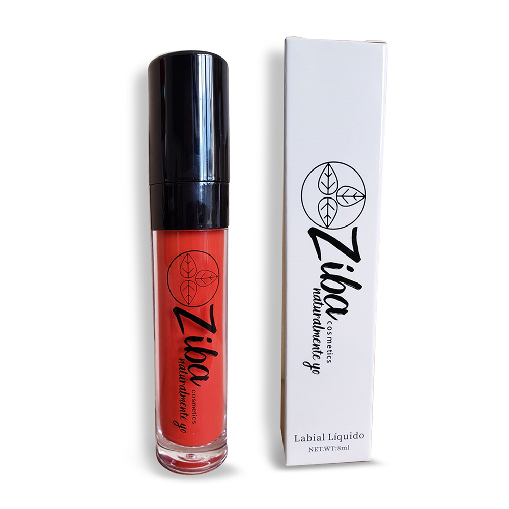 Labial líquido Ziba Color Naranja en diferentes tonos con una duración larga y Vitamina E.